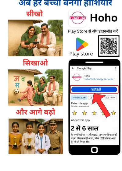 This app is developed by Hoho Technology Services. This app is designed to help parents teach children aged 2–6 years through interactive videos and activities, even if the parent is illiterate or semi-literate, using their mother tongue.